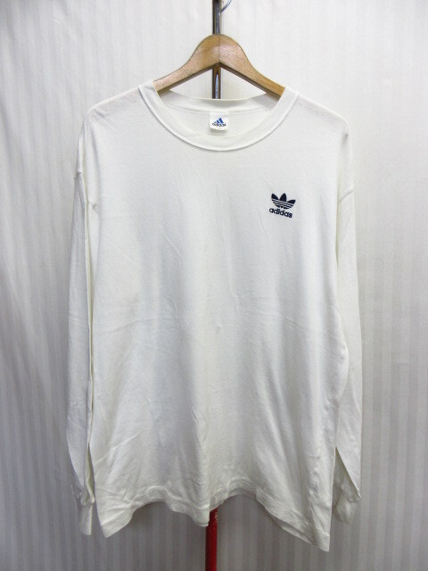 - アディダス 90sヴィンテージ トレフォイル刺繍Tシャツ メンズL-O XL LL 白Tシャツ 長袖Tシャツ ロンT 三つ葉ロゴ刺繍シャツ 04292
