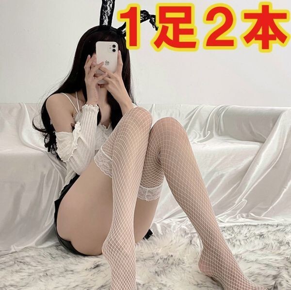 - 白 1足2本 ガーターストッキング 網タイツ ハイソックス オーバーニーソックス セクシー ニーハイ 可愛い コスプレイ OL 美脚 ホワイト