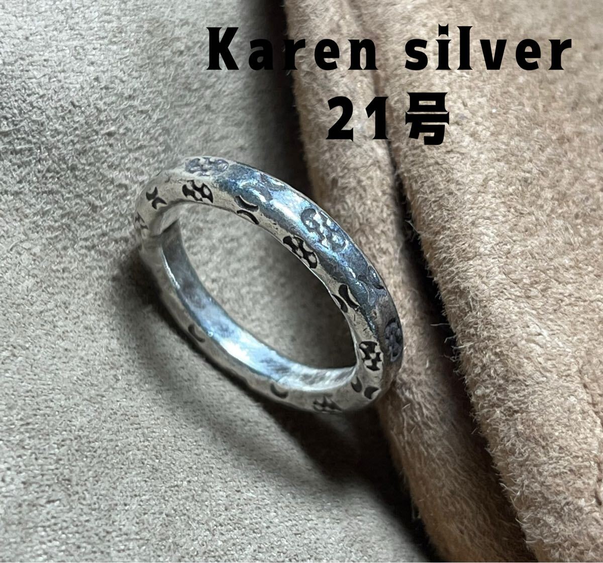 - R73べAやk カレンシルバーリング高純度手作りスターリングSILVER平打ちスタンプ21号やk