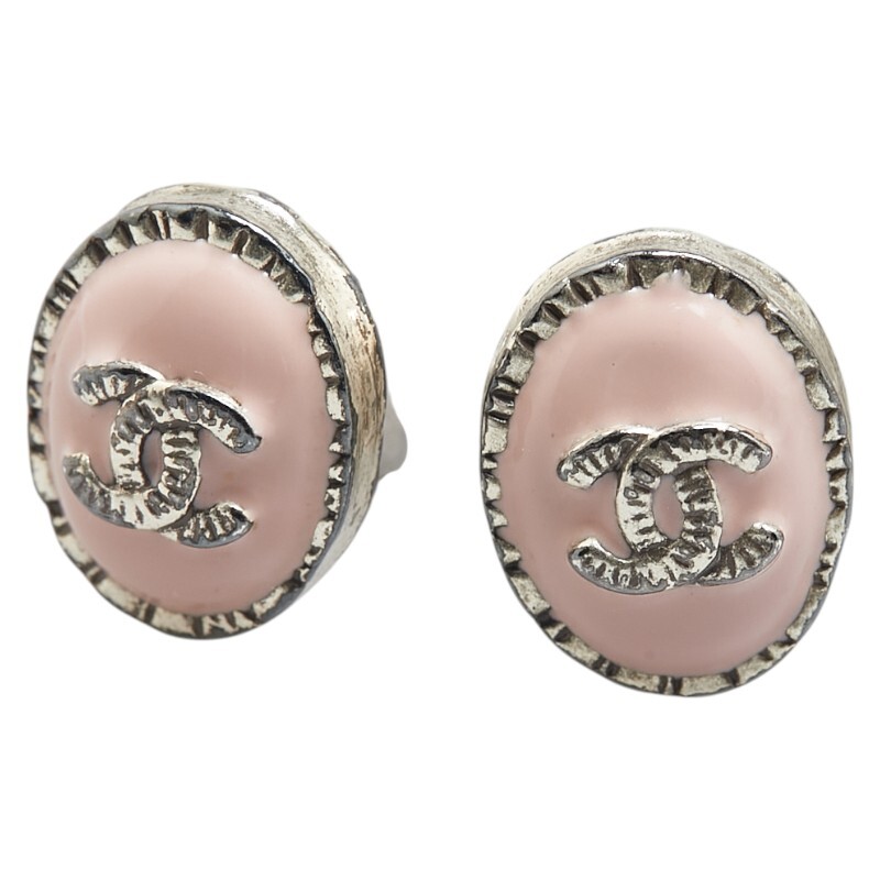 > シャネル ココマーク オーバル ピアス シルバー ピンク メタル レディース CHANEL 【中古】