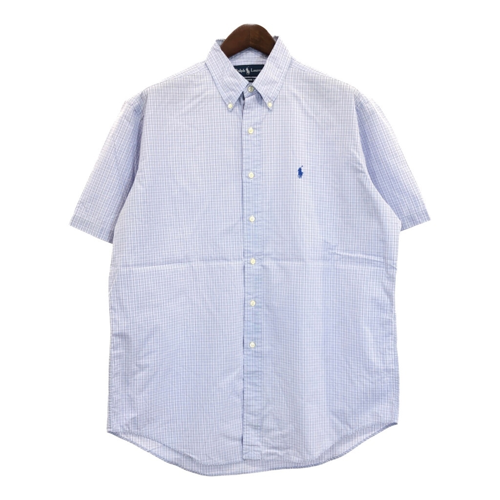 > RALPH LAUREN ラルフローレン 半袖シャツ チェック ライトブルー(メンズ L)中古 古着 U0172