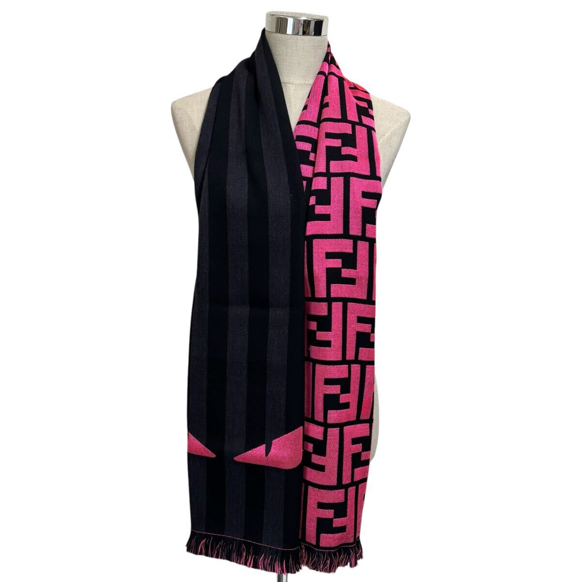 - FENDI フェンディ バグズアイ ズッカ マフラー モンスター ブラック ピンク FXS124 ASSU TU