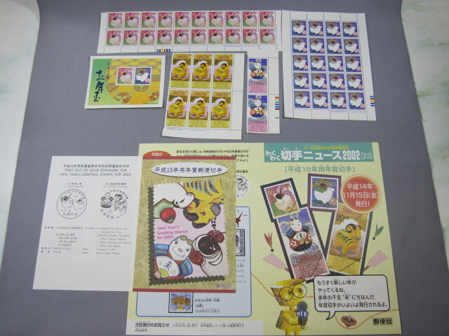 - 送料無料 4柄 記念 平成15年 ひつじ 未 [お年玉 年賀 80円×20枚シート][くじ付お年玉]解説 切手ニース[平成14 2002年販売]カラーマーク