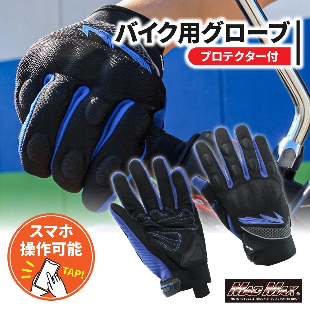 - バイク用 ライディンググローブ スマートフォン対応 GST09 ブルー Mサイズ アウトドア キャンプ サイクリング ツーリング 自転車 2輪