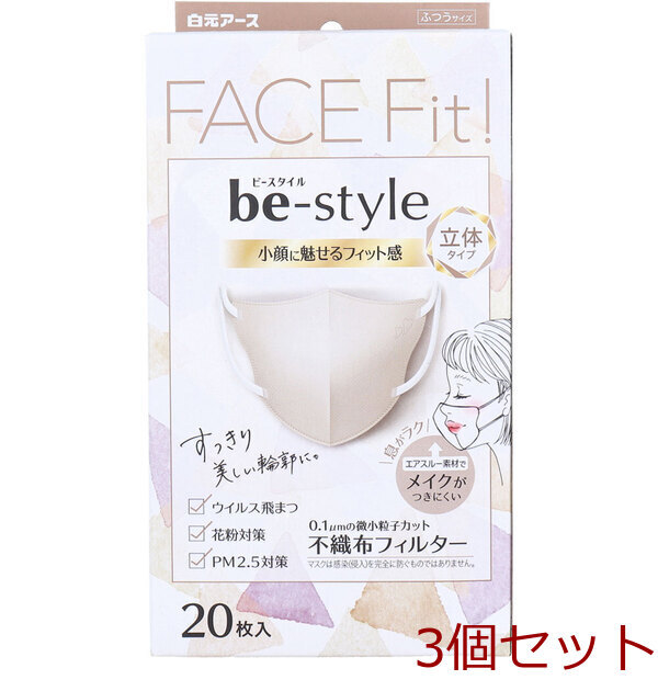 - ビースタイル 立体タイプ ふつうサイズ ミルクティーベージュ 20枚入 3セット