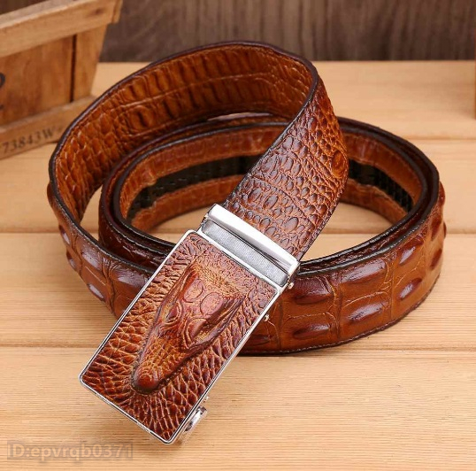 - レザーベルト※新入荷 上質 本革牛革 ワニ柄 オートロック式 ゴルフベルト メンズベルト 紳士 革ベルト 長さ調整可能 2色選ぶ/ブラウン