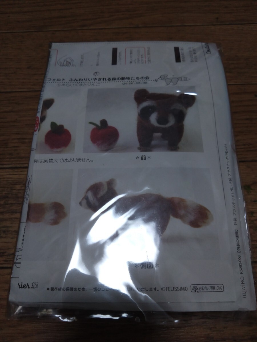 > ★ 新品 フェリシモ ざぐざくニードルフェルト ふんわりいやされる森の動物たちの会 『あらいぐまとりんご』 手芸キット ★