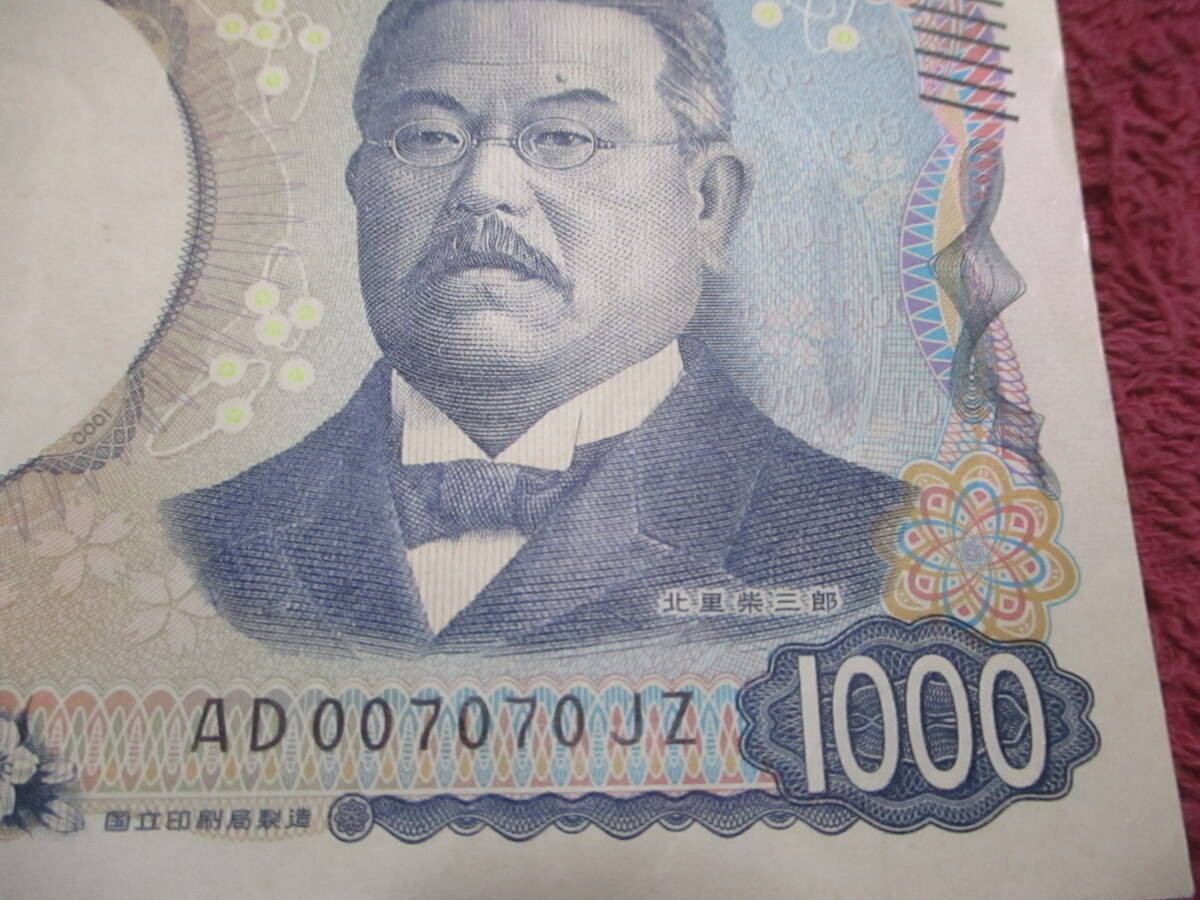 - ピン札新札★新紙幣 北里柴三郎1000円札 ラッキーセブン AD007070JZ 千円札 良番★YN