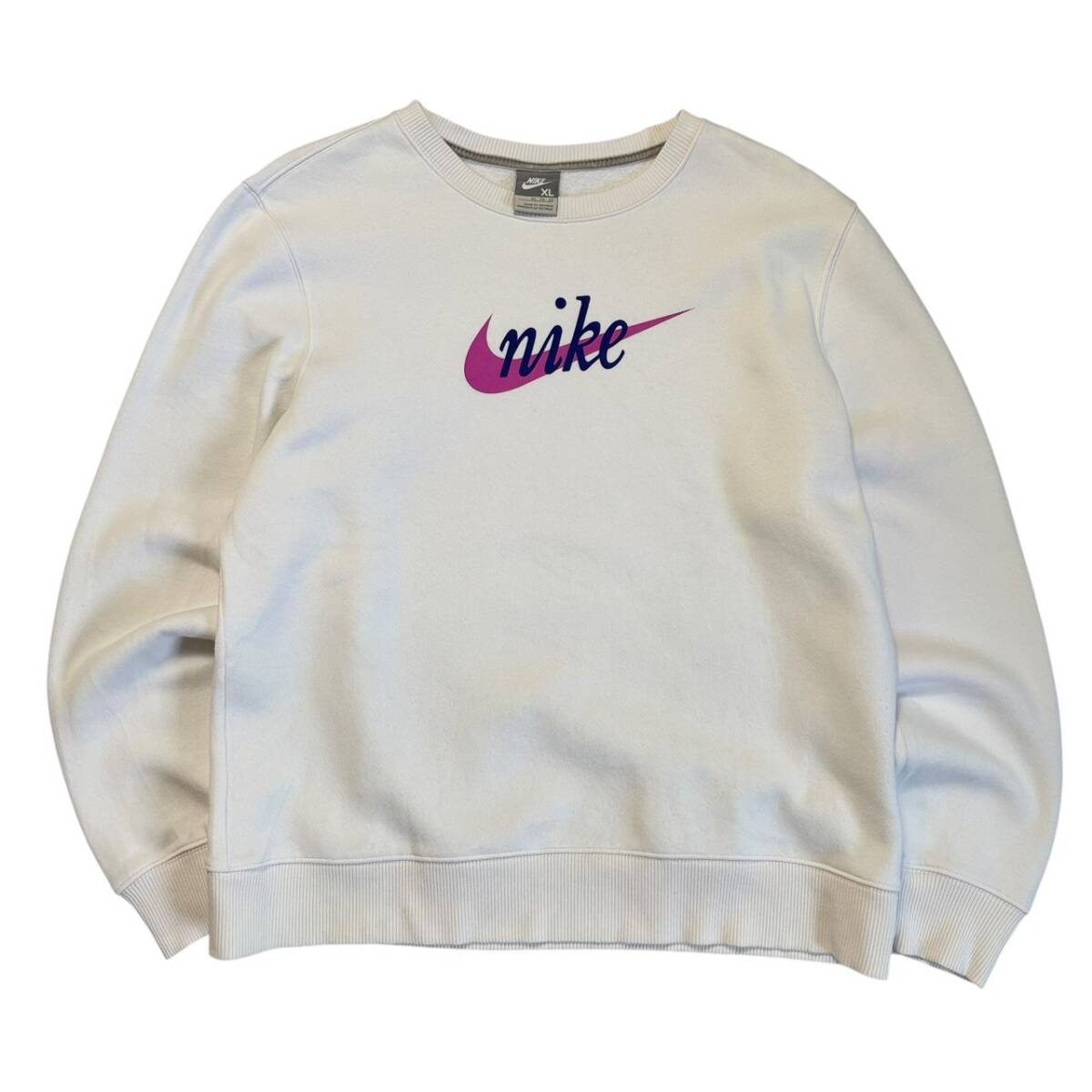 - レディース XLサイズ 古着 NIKE ナイキ センターロゴ 筆記体 スウェット トレーナー 裏起毛 白 ホワイト