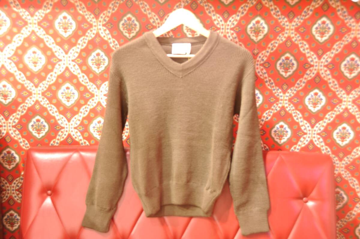 - Vネックセーター 軍モノ フランス軍 1982年 デッドストック ウールセーター 深緑色 アーミーウェア 厚手冬物 GILLES グリーン