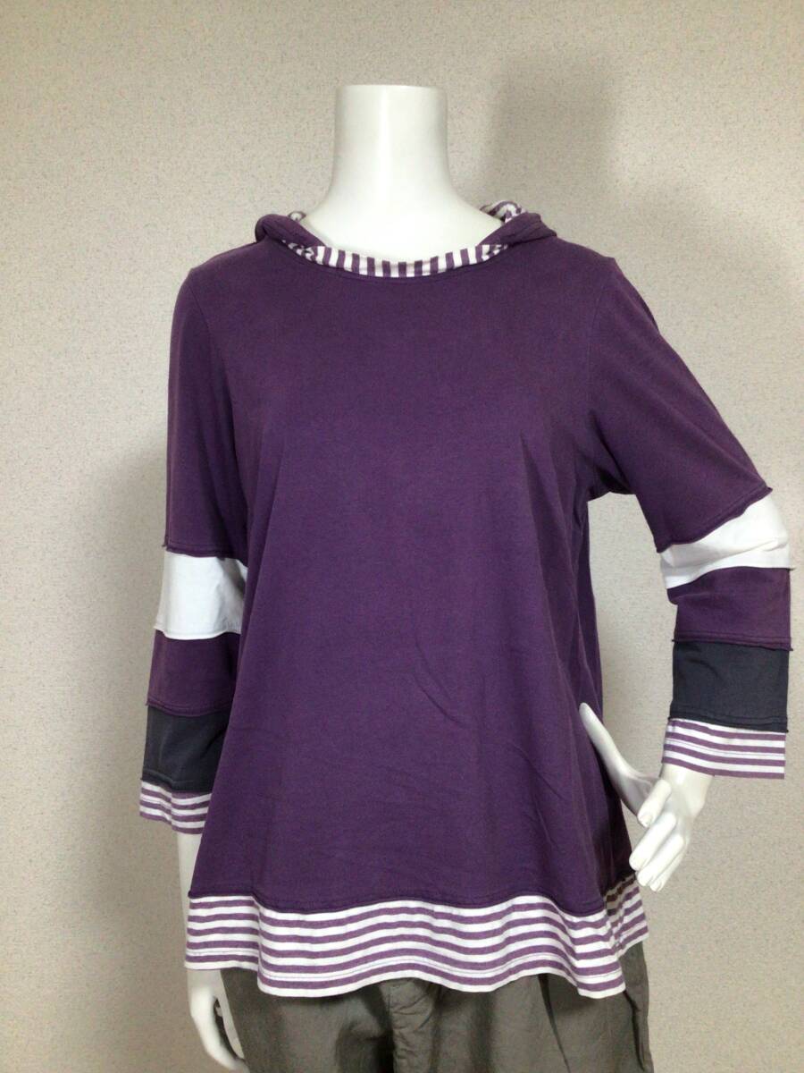 - M2507/センソユニコ i+mu フード付ボーダーカットソー/40/パープル