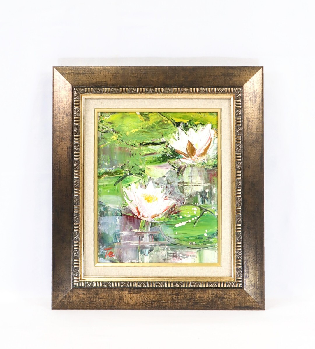 - 真作 佐藤哲 2011年油彩「睡蓮」画寸 F3 大分県出身 日本芸術院会員 一枚の繪作家 江藤哲に師事 形あるものの儚さ静かな時間の結晶化 10772