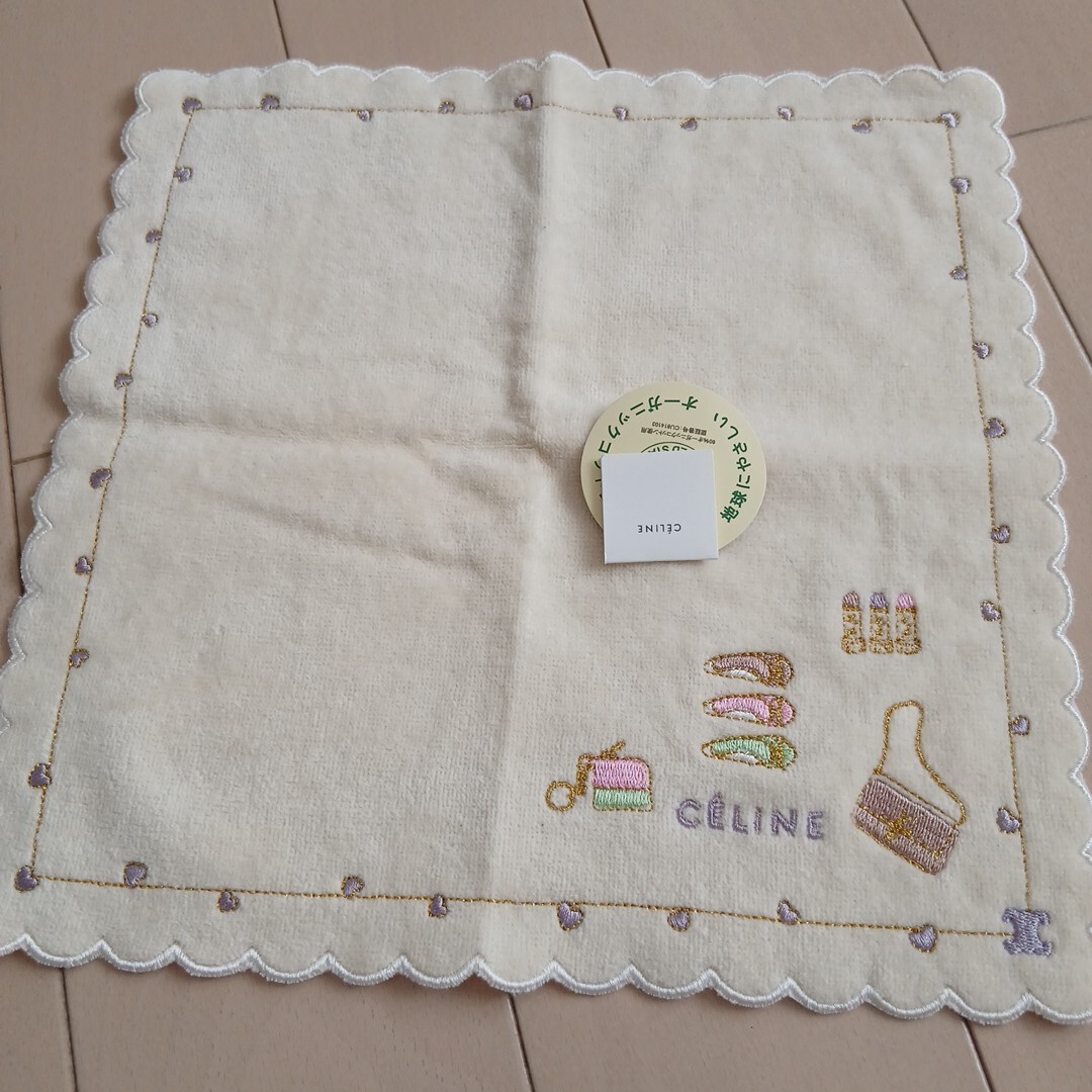- CELINE セリーヌ タオルハンカチ バッグシューズロゴ刺繍 オーガニックコットン クリーム色