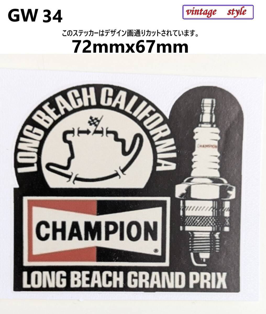 > GW34-4 特価 ヴィンテージスタイル チャンピオン スパークプラグ ガソリンステッカー ダメージ加工 レトロ ガレージ デカール