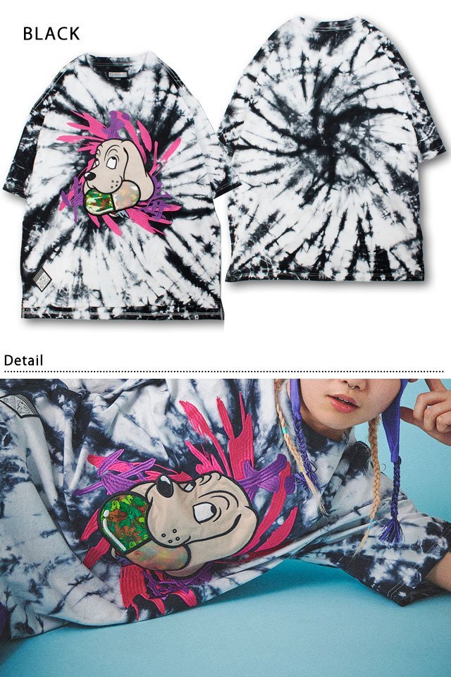 > 犬中毒Tee◆GALFY ブラック Lサイズ(中型犬) 152017 ガルフィー タイダイ染 オーバーサイズ ユニセックス