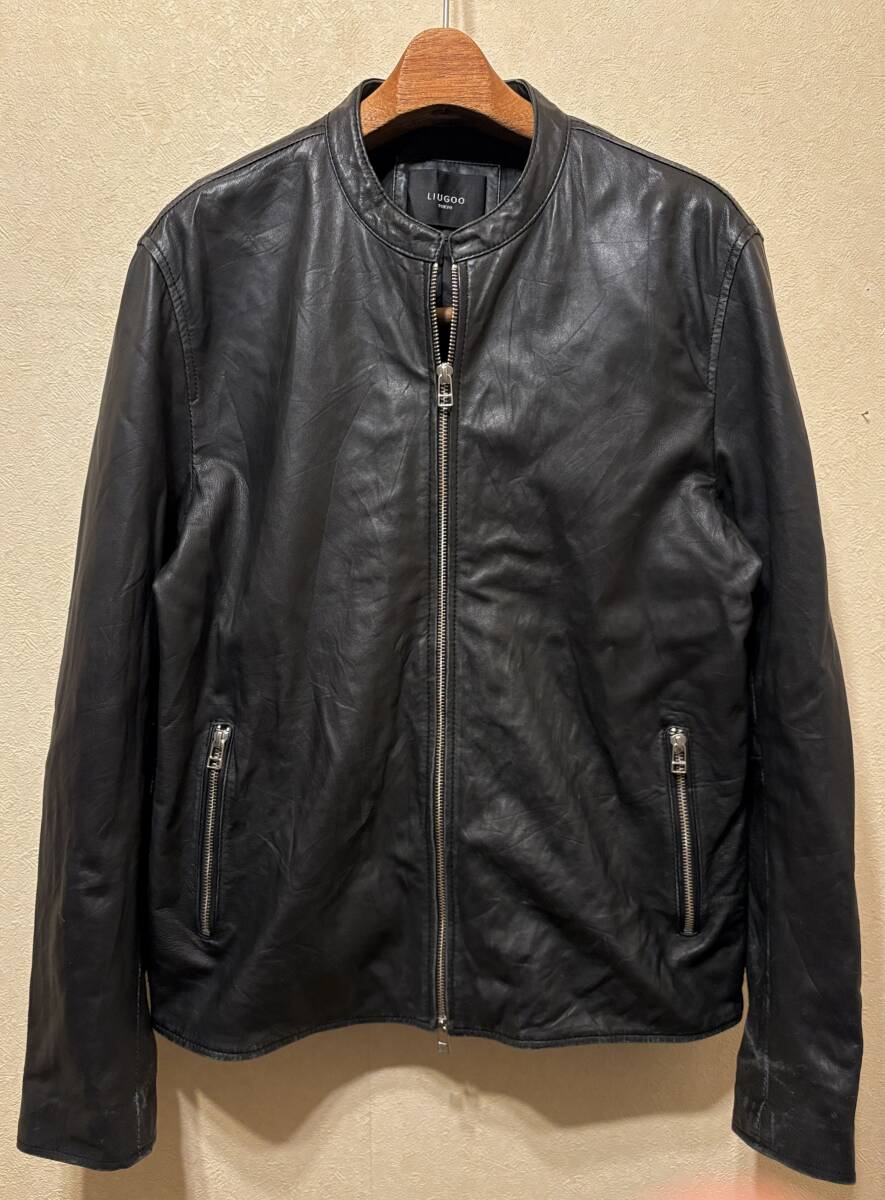 - 良質シープスキン美シルエットLIUGOOレザー羊革ジャケット希少LLサイズXL2L細身フルジップ本皮シングル黒ライダースy2kビンテージ皮モデル