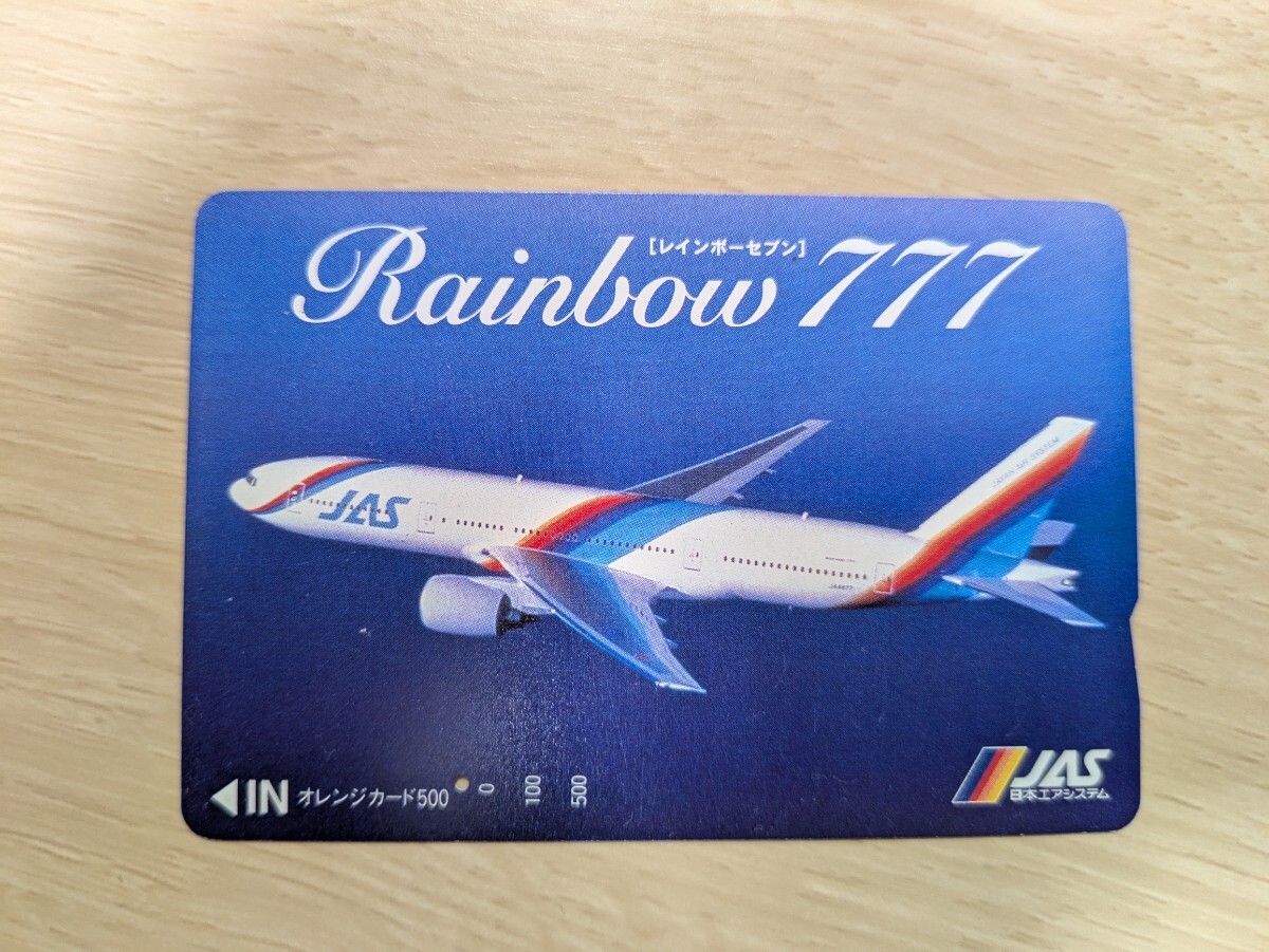 > 即決!使用済オレンジカード JAS 日本エアシステム レインボーセブン777 フリーカード【一つ穴】