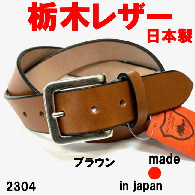 - ブラウン 栃木レザー ベルト 35ミリ 本革 牛革 プレーン 日本製 230403