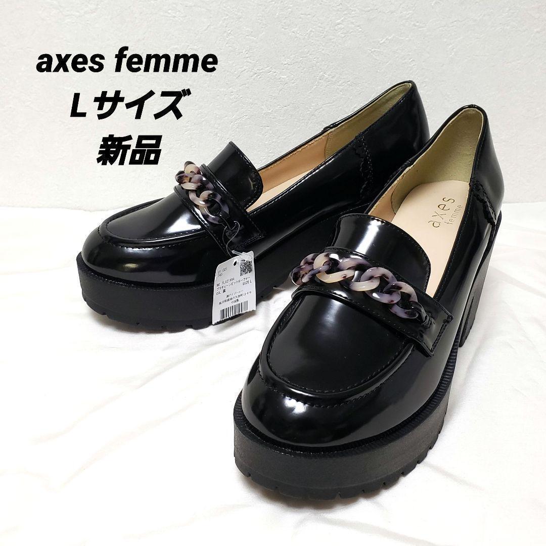 - 【axes femme】厚底ビットローファー ブラック レース柄×プラチェーン