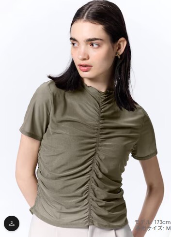 - 新品♪ジーユー≪GU≫♪個性的に♪シアーギャザーTeeシャツ♪Mサイズ/オリーブ♪