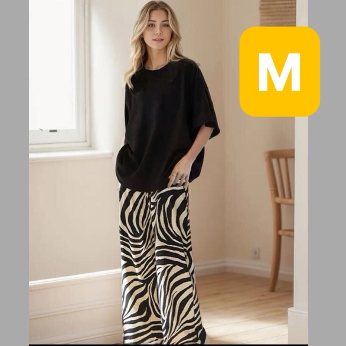 - セットアップ レディース パジャマ カジュアル 半袖 ロングパンツ セット ゼブラ プリント 高級 ホームウェア ツーピース セット M