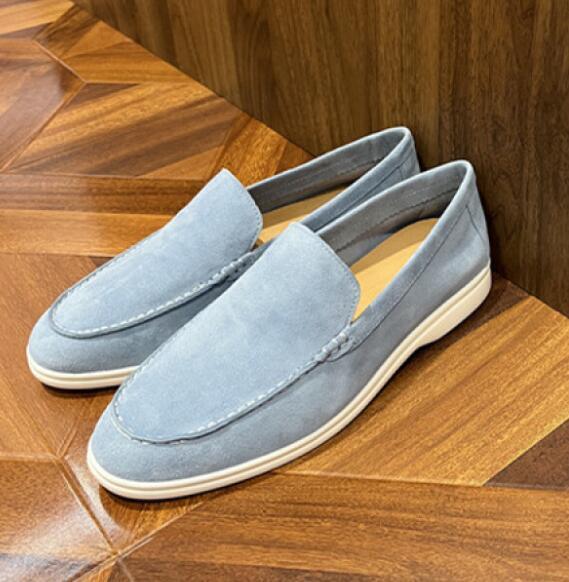 > 超希少■スエード革 ローファー 本革 スリッポン 職人手作り ドライビングシューズ ビジネスシューズ 牛革 革靴 紳士靴 ブルー24.0~29.0cm