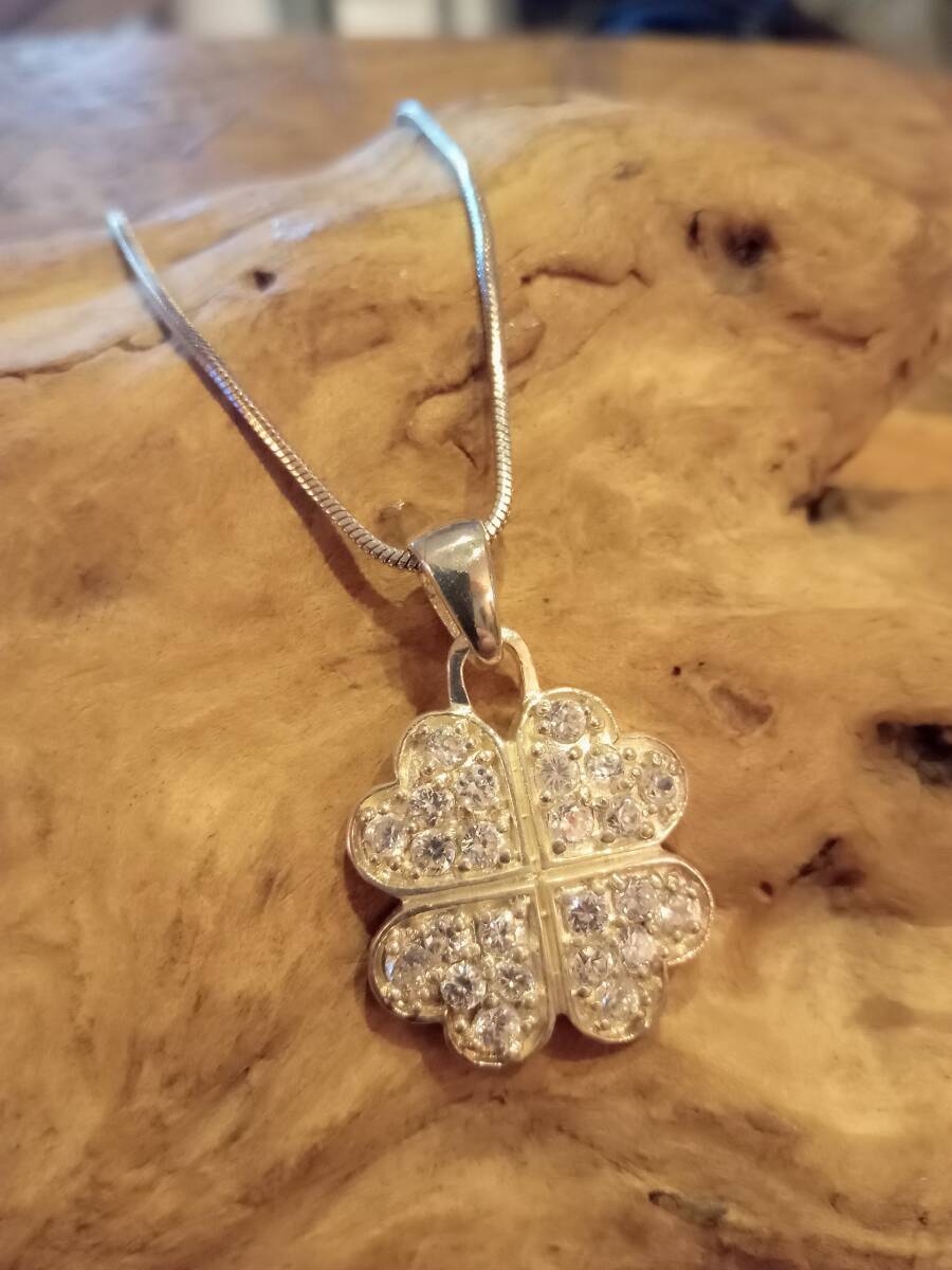 - シルバー925四つ葉クローバー,ハート,ペンダントネックレス,パヴェ,ジルコニア