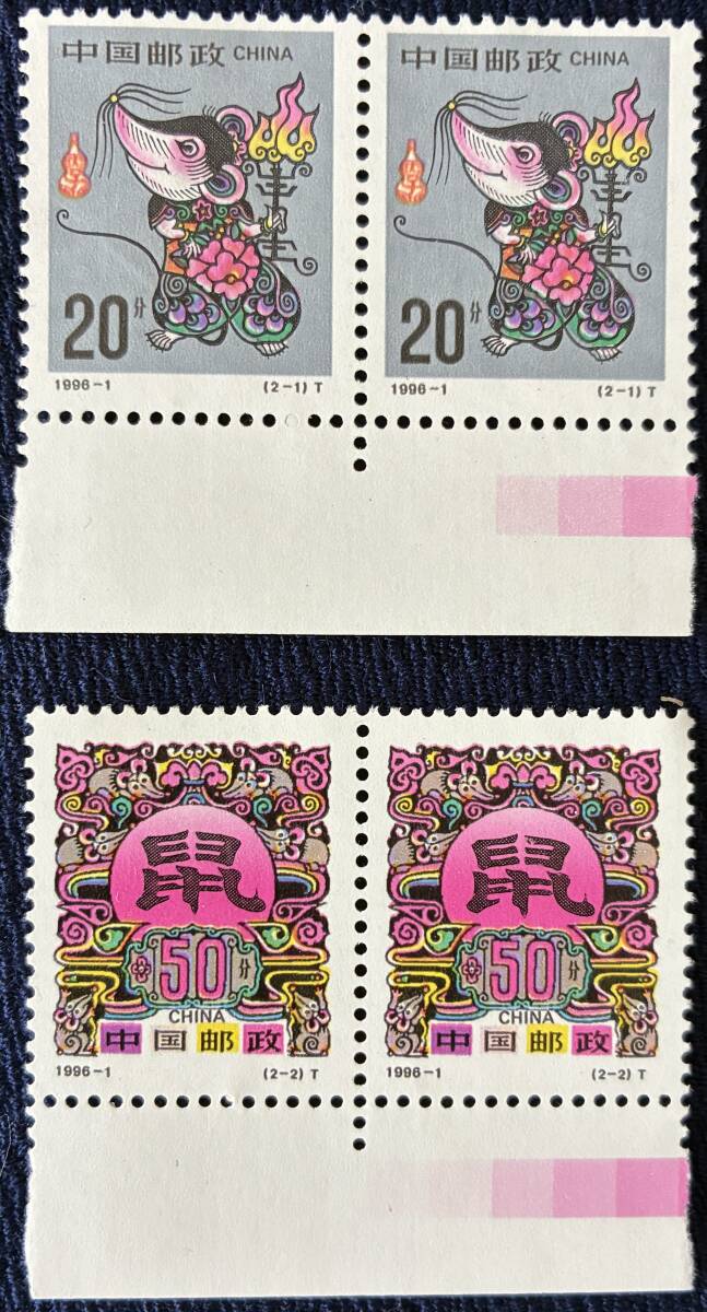 - 新中国切手ー未使用 1996年 1996-1T 年賀切手 2種完 耳付き