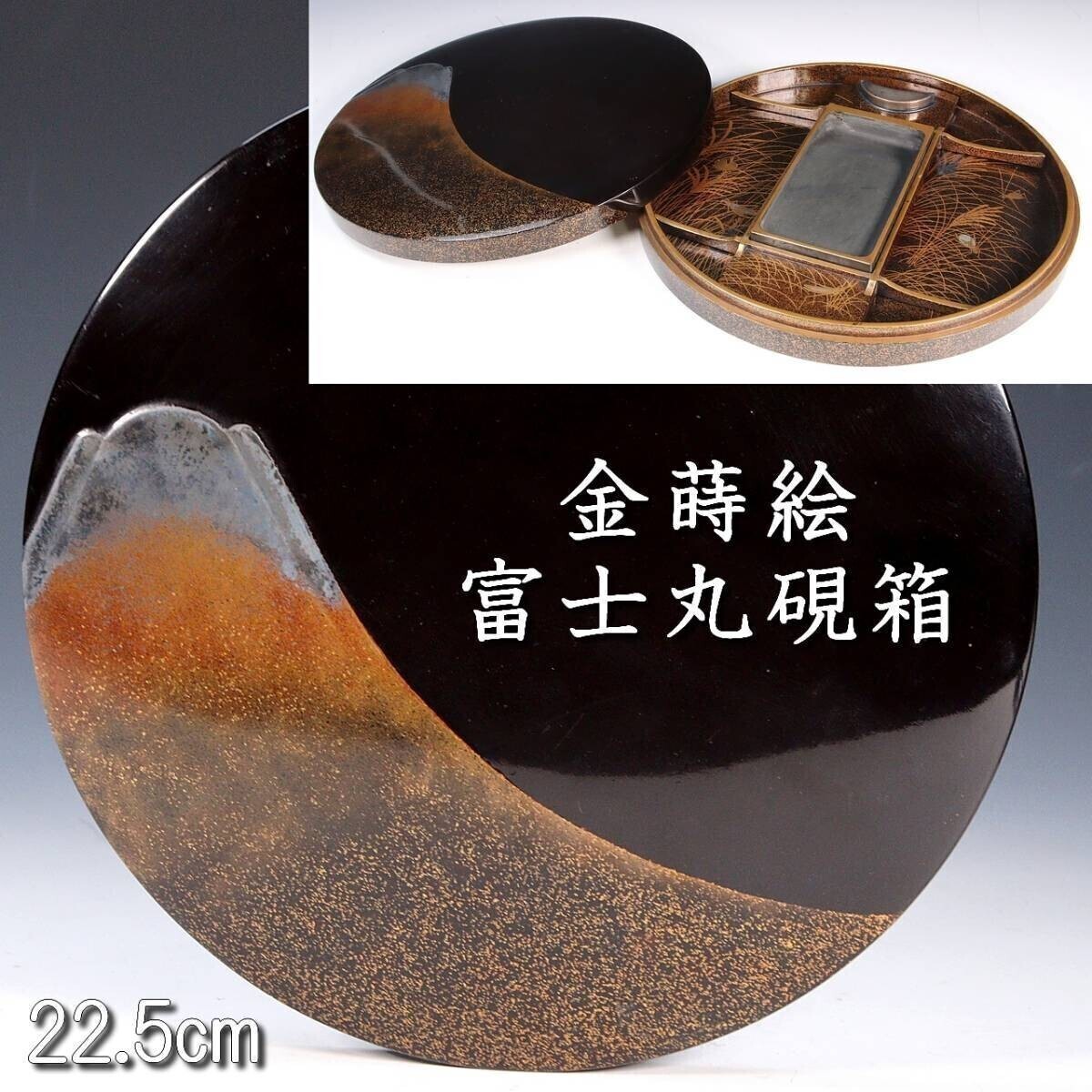 - 【爨】古美術品 富士図蒔絵丸硯箱 22.5cm 箱付 書道具 唐物骨董 [N153]OOV/23.11廻/FM/(120)