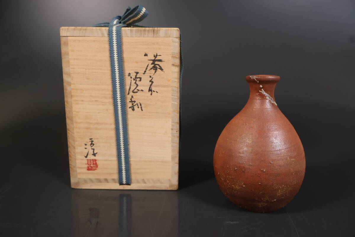 - 【和】(A2573) 作家物 伊勢崎淳作 備前焼徳利 酒器 共箱有