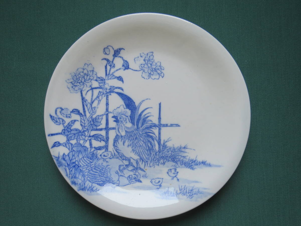 - 印版 皿 鶏 親子 図 夫婦にわとり ひよこ