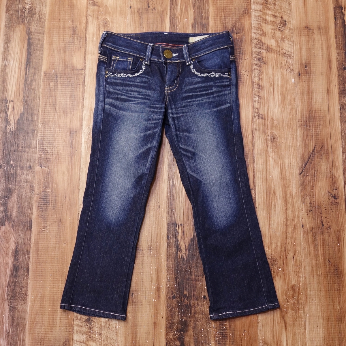 > 美品 サムシング SOMETHING ブーツカットデニムジーンズ レディース 刺繍 パール ストレッチ Sサイズ デニム パンツ インディゴブルー NP10