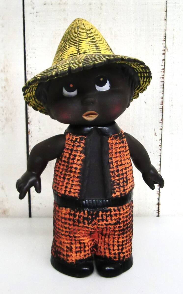 - 昭和レトロ 当時物 *ソフビ 人形 *民族衣裳 褐色 *高さ 25cm *置物 インテリア *キャラクタードール コレクション