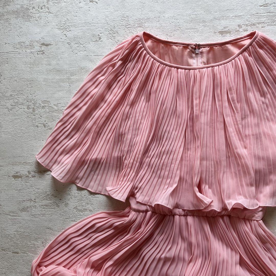 - 昭和レトロたっぷりプリーツロングワンピースピンク9号N2