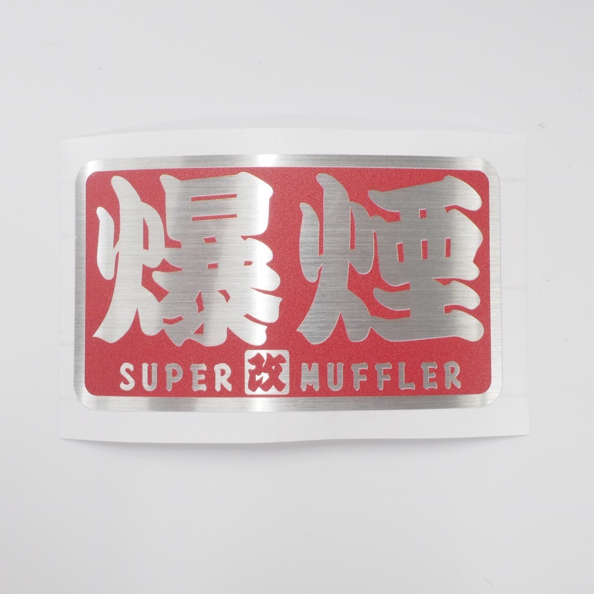 > (耐熱シート)爆煙『改』 赤 ヘアライン ステッカー 8cm スーパーマフラー ワンポイント ヤンチャ使用 走り屋 MUFFLAR