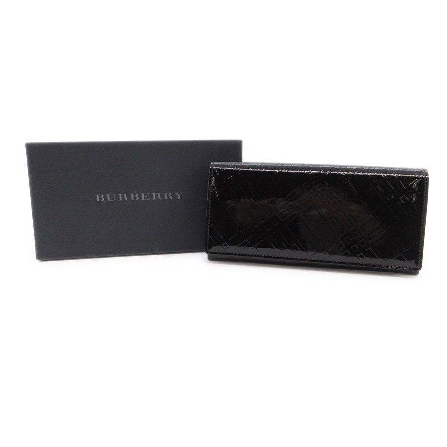 - 送料無料 超美品 バーバリー BURBERRY 長財布 財布 二つ折り エナメル パテントレザー エンボス加工 チェック柄 メンズ