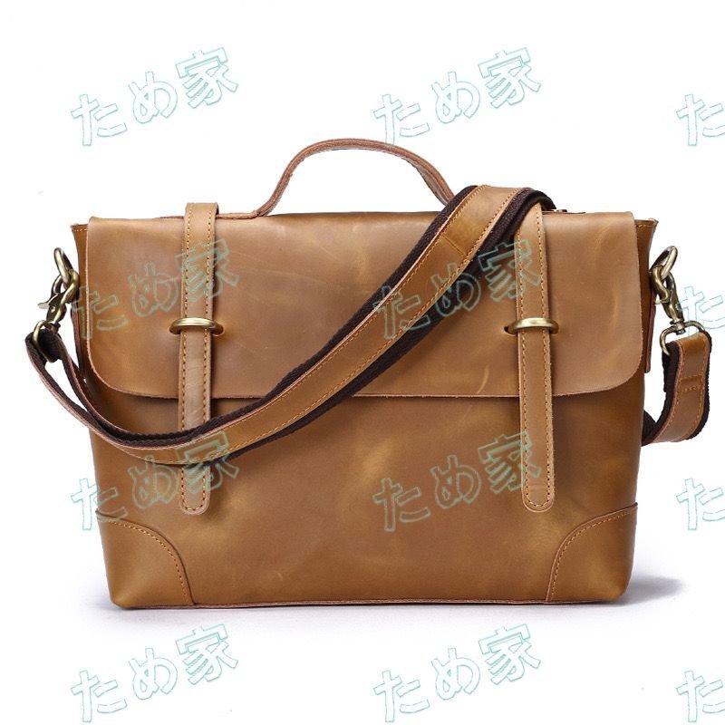 - ショルダーバッグ オイル仕上げレザー メンズ 本革 レザー 斜め掛けバッグ iPad対応 鞄 機能的収納豊富 斜めがけ ブラウン