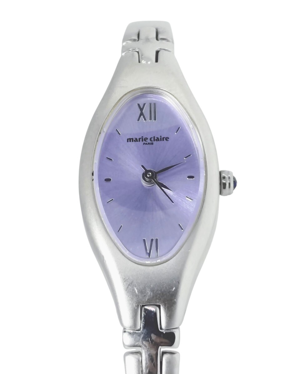 - 【電池交換済】marie claire マリクレール RPCC-Q0 レディース 腕時計 紫文字盤 クォーツ シルバー 中古動作品 本体のみ 腕周り15cm