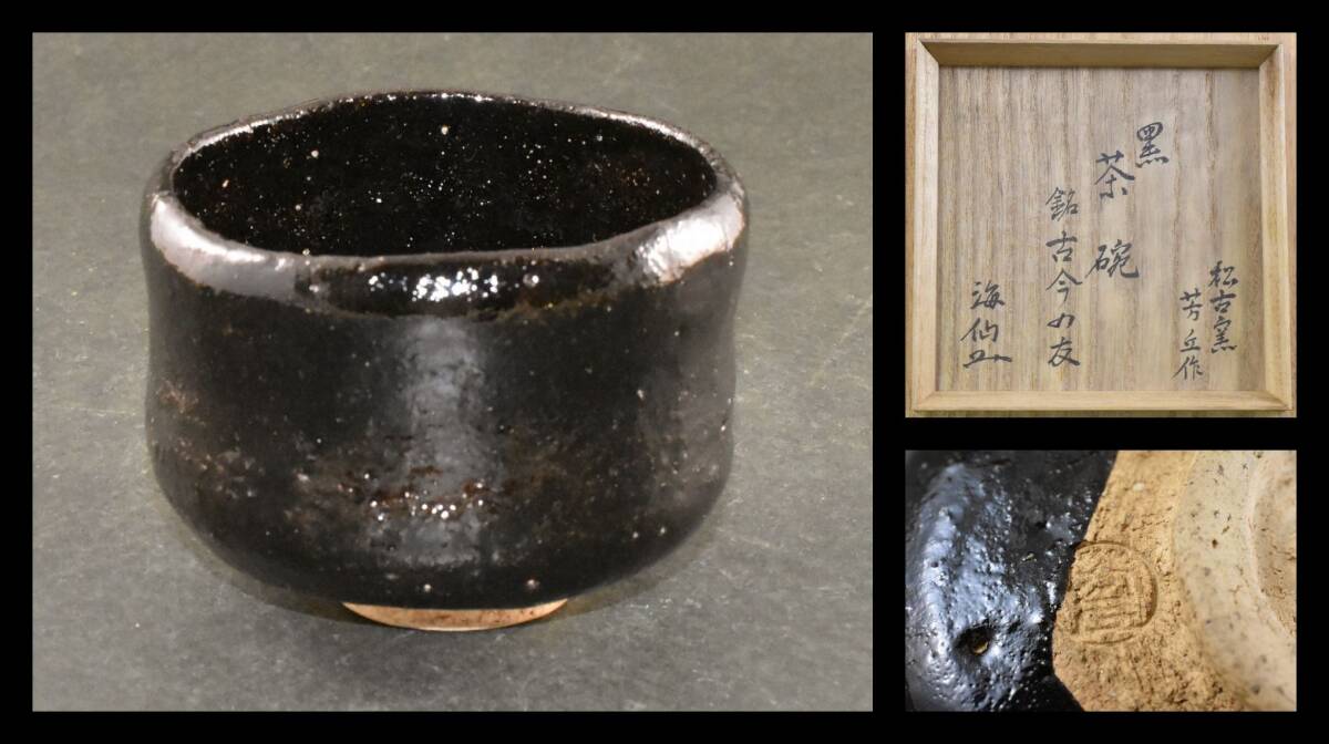 - ■楠廸庵■茶道具 海仙 古今の友 黒茶碗 佐久間芳丘作 共箱 箱書