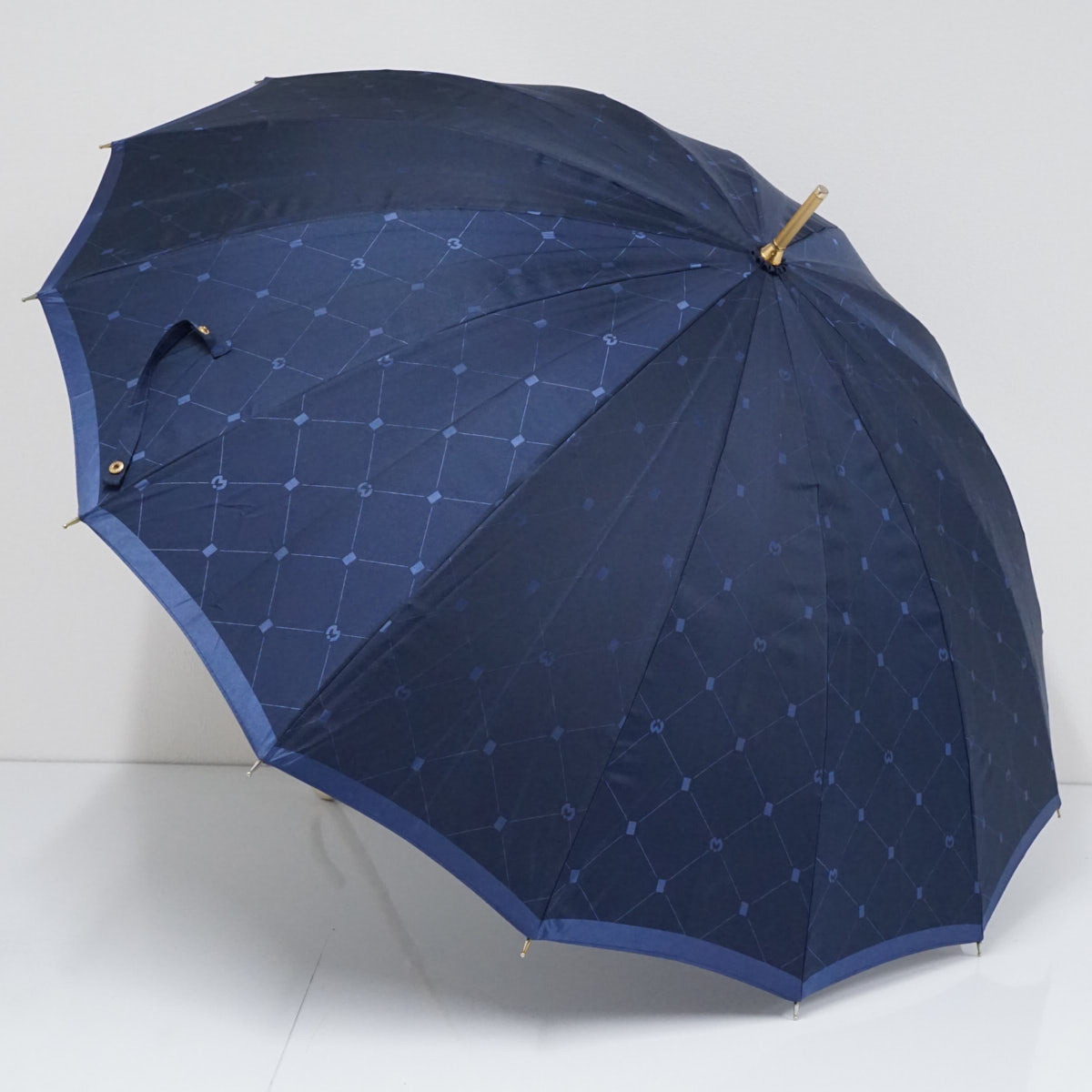 > mila schon ミラショーン 14本骨傘 USED美品 ジャガード ネイビー ブランド 55cm 多間 A2506