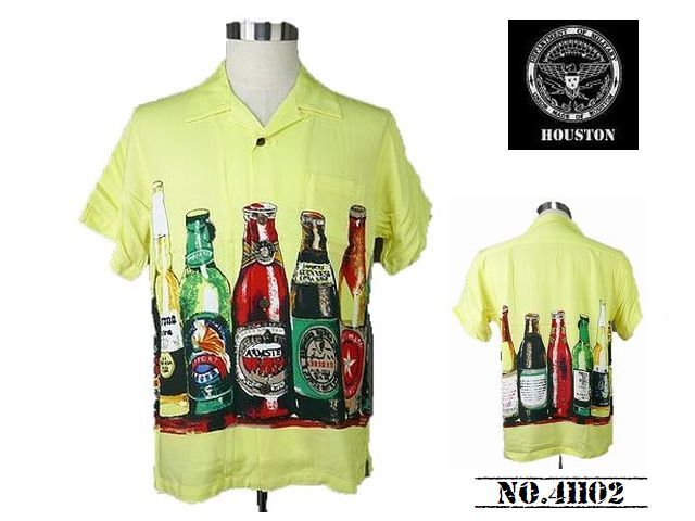 > 【送料無料 30%OFF】HOUSTON ヒューストン アロハシャツ ハワイアンシャツ 「BEER」柄 NO.41102 YELLOW_Mサイズ