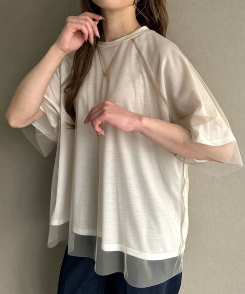 - 新品・未使用♪JUNOAH≪ジュノア≫♪チュールレイヤードTシャツ レディース♪フリーサイズ♪ 5720円♪