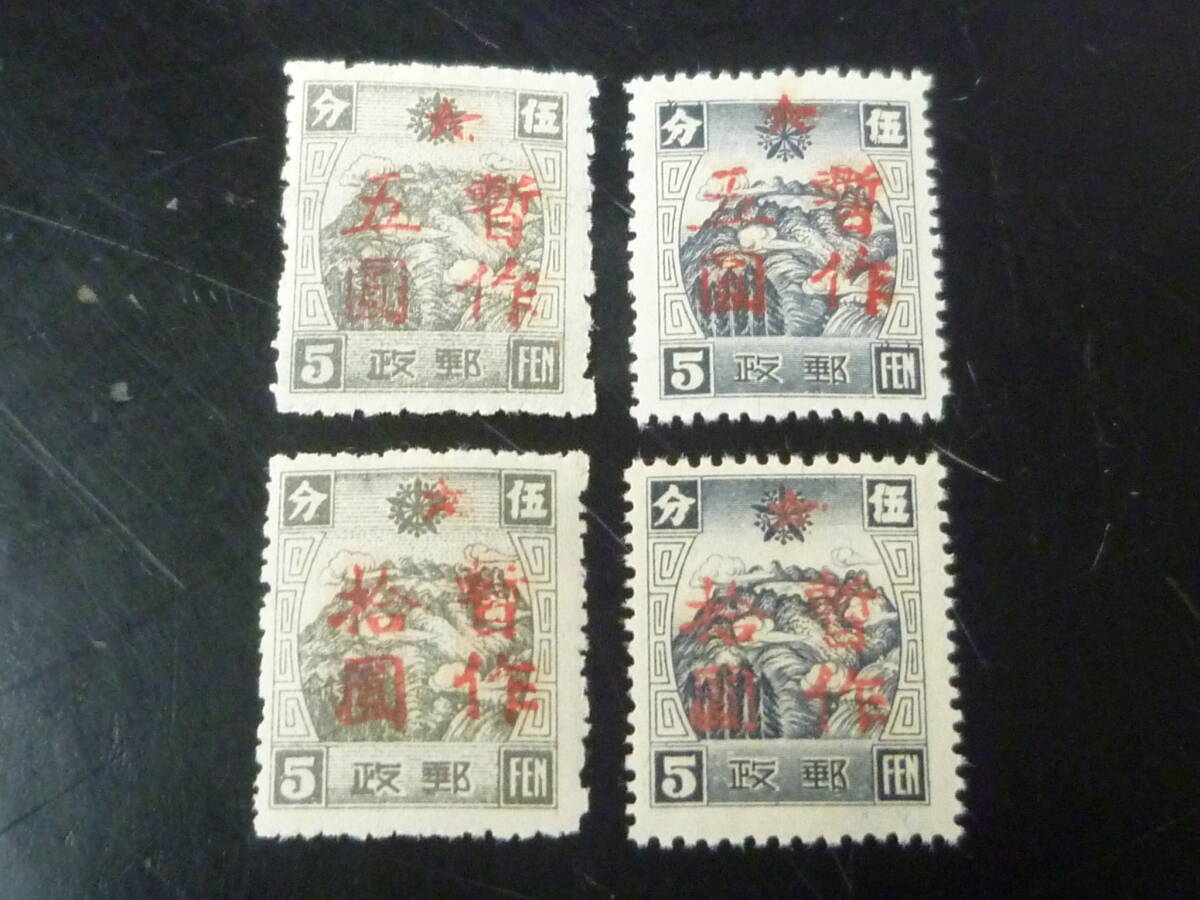 - 25SE M №1 中国解放区切手 東北区 1947年 楊#NE246-249 安東第二版加蓋改値 4種完 未使用NH ※説明欄必読