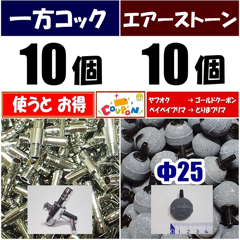 - 【送料込】 一方コック 10個+Φ25 エアーストーン 10個 エアーコック シュリンプ・メダカ水槽のエアー供給用に エアーポンプ圧調整に
