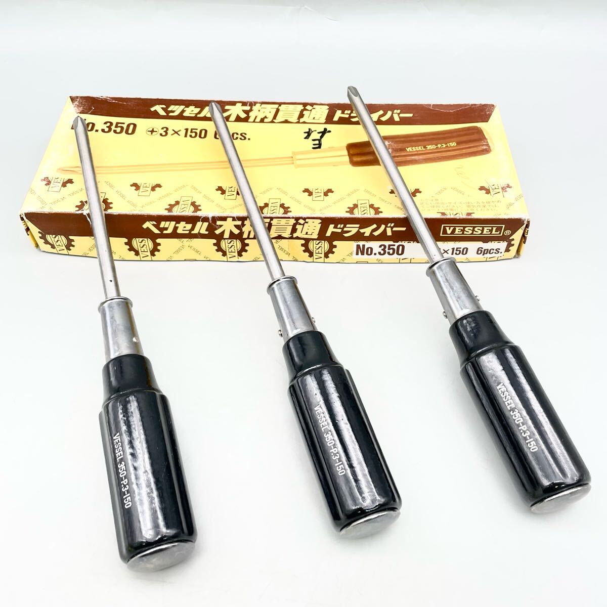 - [新品 未使用品] VESSEL ベッセル No.350 木柄 貫通 ドライバー 3本 プラス +3 200mm 工具 ブラック 黒 ハンドツール 金物屋 在庫 まとめ