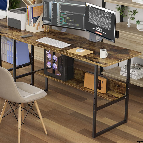 - 【収納ラックは4段階で高さ調整が可能】 ブラック/アメリカンビンテージ PCデスク 幅150cm 組立簡単 ワイド収納 作業机