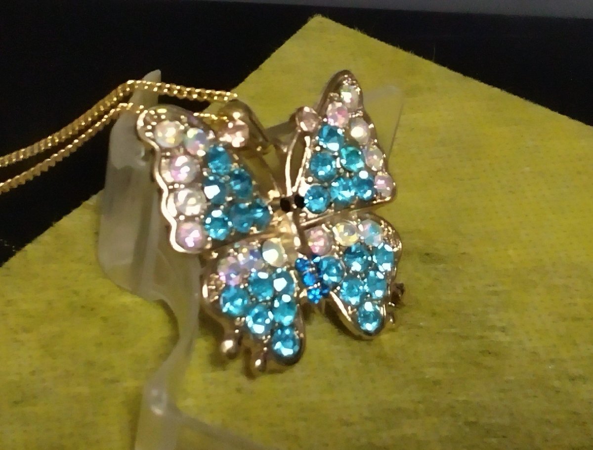 - 煌めくスワロフスキーの素敵なバタフライ蝶のゴールドペンダント