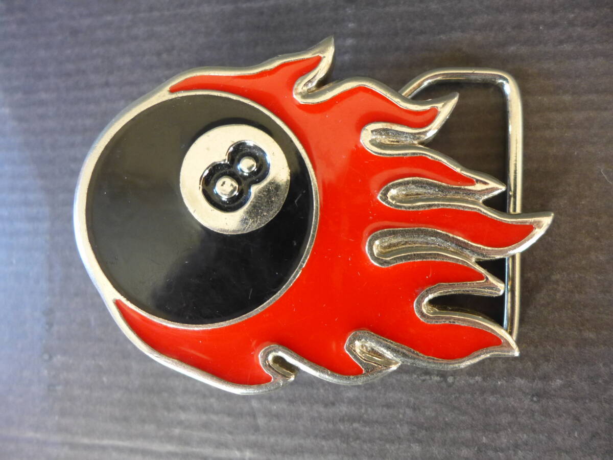 - ★ 当時物【ストック品・未使用】ビリヤード 8数字 エイトボールファイヤー バックル 昭和レトロ ★