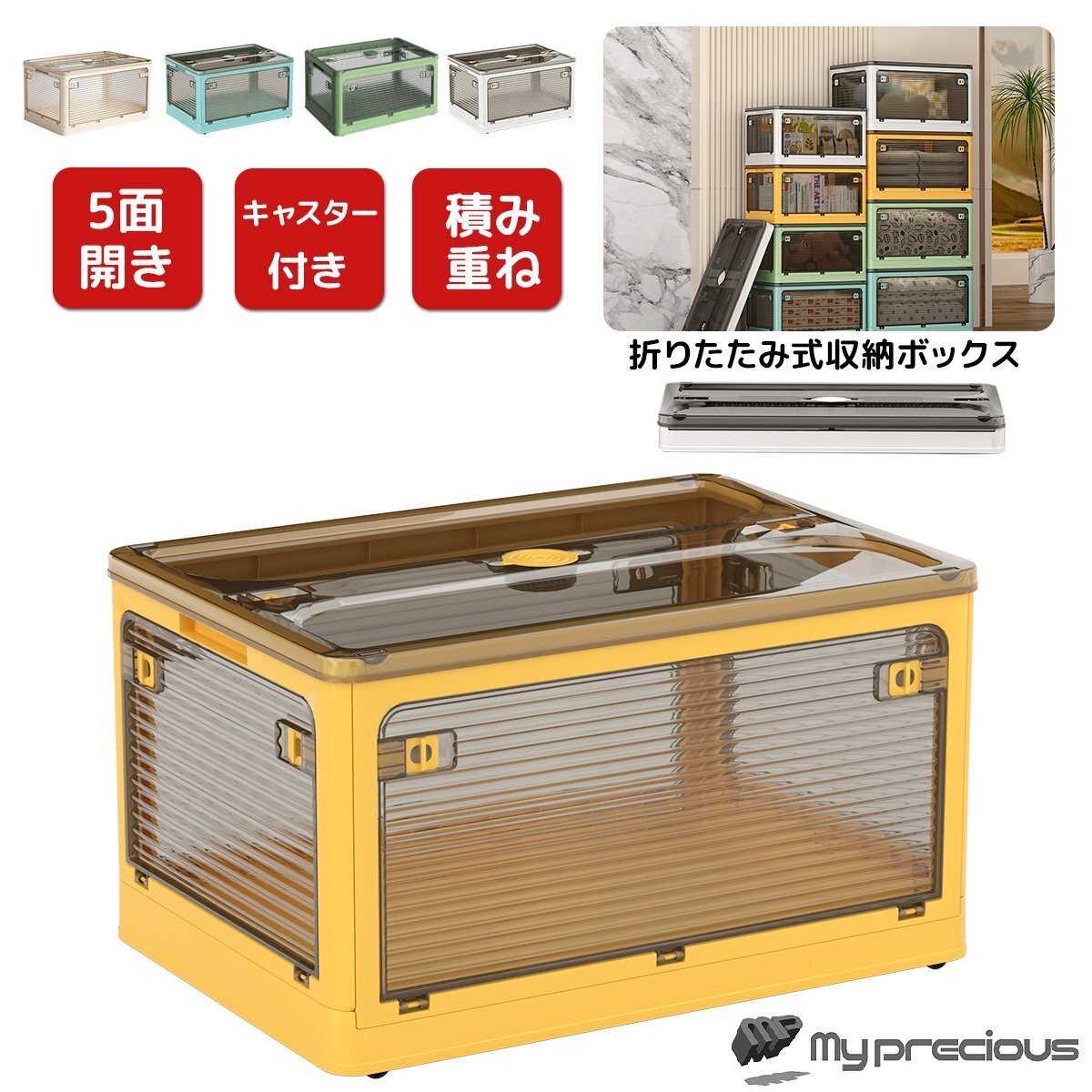 - 折りたたみ式 収納ケース 収納ボックス 44L 大容量 蓋付き キャスター付き 透明 衣類収納5面開き /2L ★5色選択【送料無料】