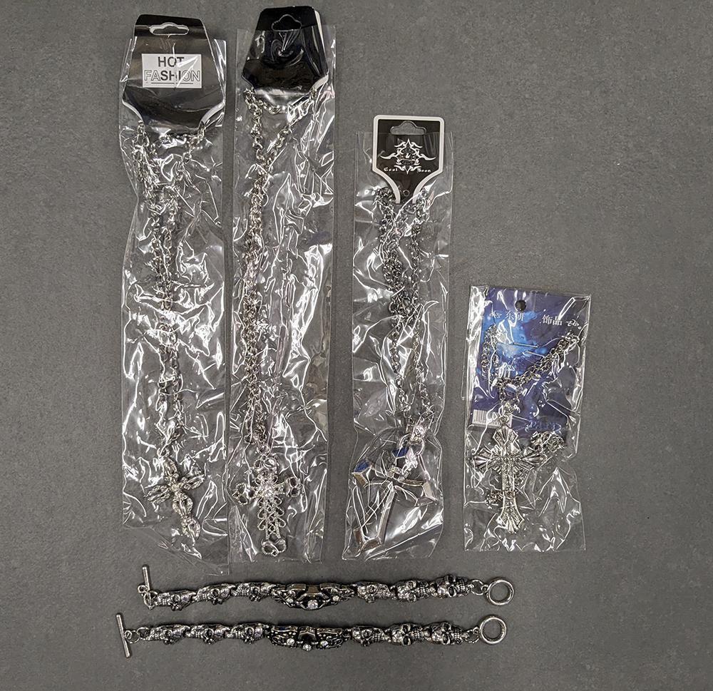 - まとめ売り 6点セット ネックレス ブレスレット クロス スカル 十字架 ロザリオ アクセサリー